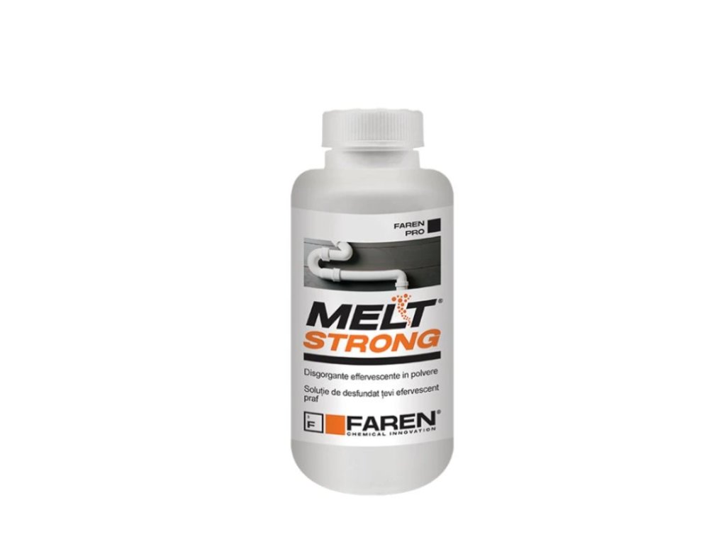 MELT STRONG je šumivý čistič odpadů v práškové formě, který odstraní i velké blokády. Je bezpečný pro ověřené plastové trubky, PVC atd.